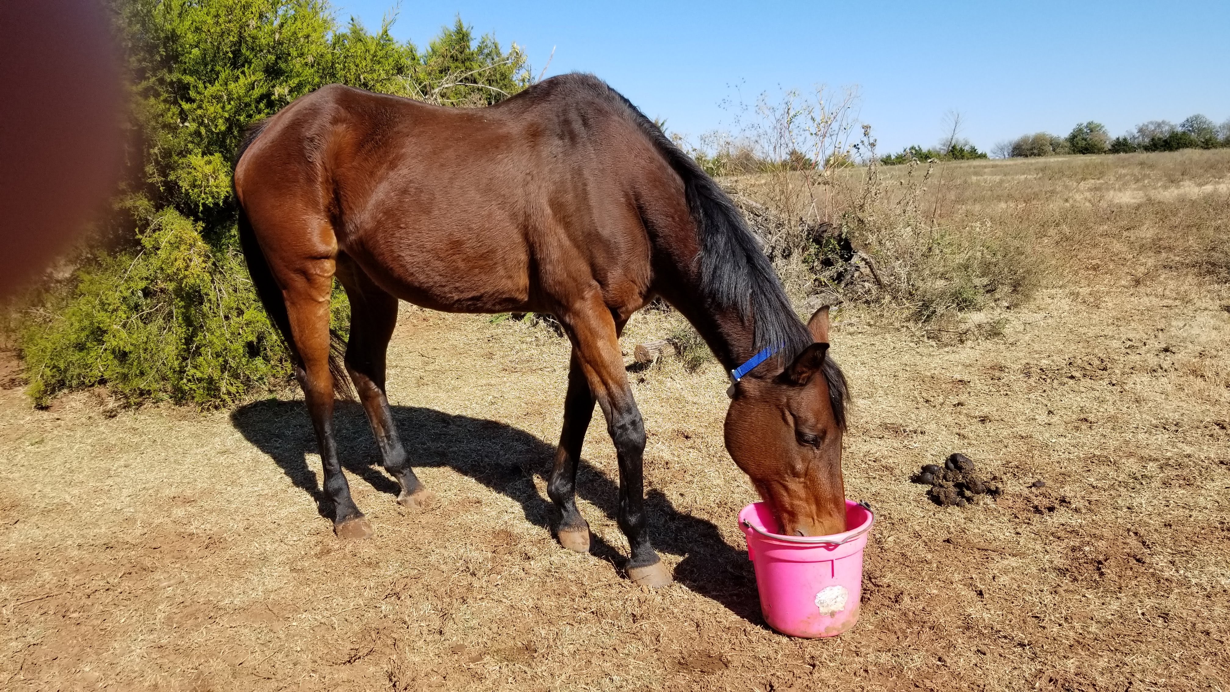 DAD is coming to us after a loving home in Ohio decided they could no longer meet her needs; which we are very thankful for as some owners will try to tough it out and it will occasionally end badly. DAD was listed as FTGH of Facebook (Free To Good Home). We replied with our Vet’s Name, Farrier and the fact that we had adopted 2 from Thoroughbred Athletes (Turtle & Granny). Now just a short week later we are waiting on transport to bring her south to Oklahoma.